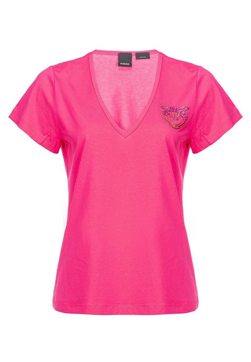 Get ready for the warmer weather with this stylish Pinko t-shirt for women. The casual, relaxed fit is perfect for all-day comfort. Featuring a fun multi-color print, this shirt is ideal for the Spring/Summer season. Add a touch of fun and flair to your wardrobe with this must-have t-shirt.