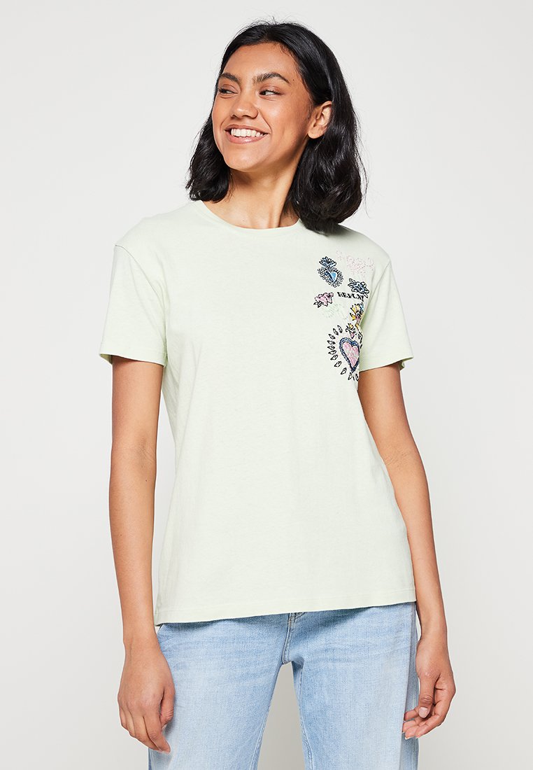 Elevate your casual style with this Replay Women's Green Printed T-Shirt for the Spring/Summer season. Designed with a trendy print, this t-shirt is perfect for adding a pop of color to your wardrobe. Made with high-quality materials, this t-shirt is both stylish and comfortable, making it a must-have for your summer wardrobe. Stand out in style with this chic and versatile t-shirt from Replay.