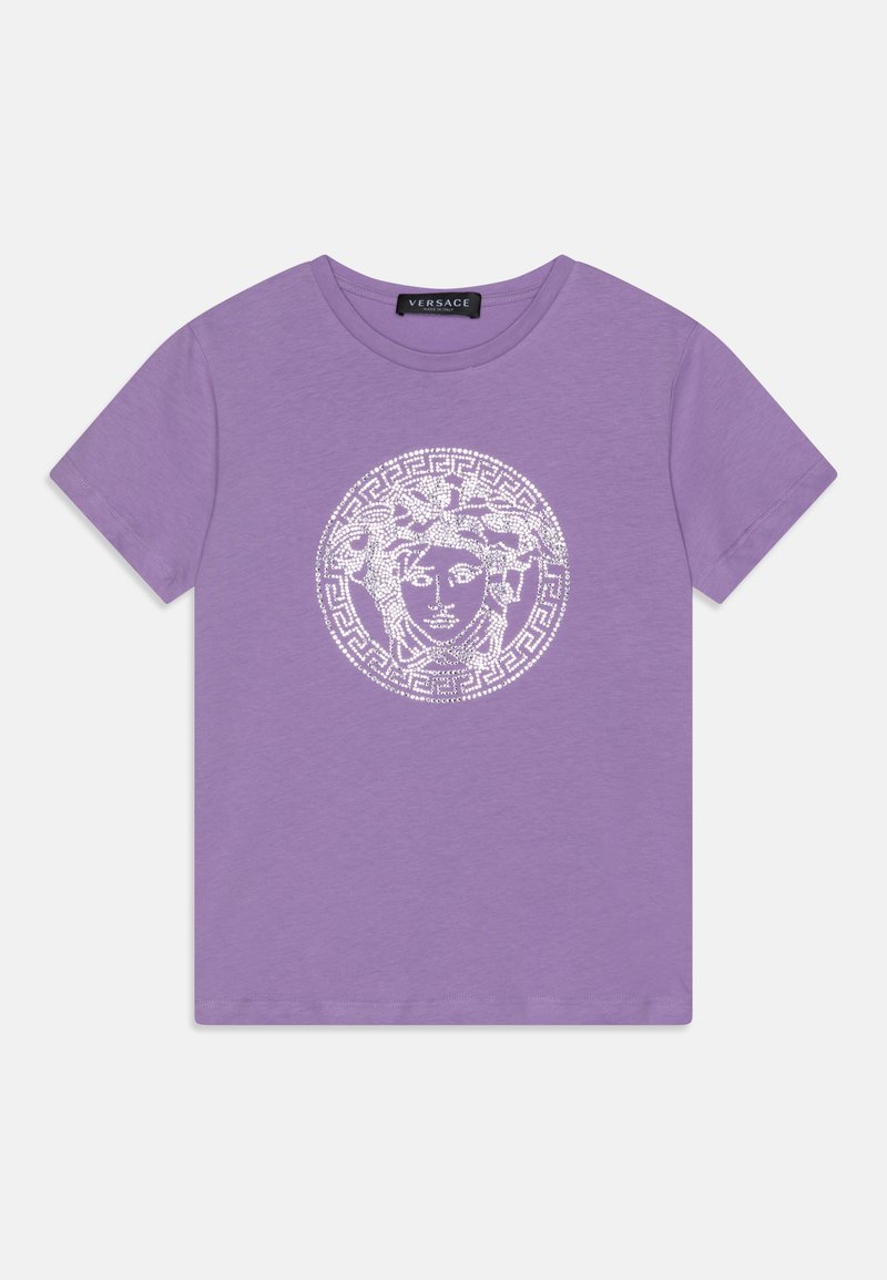 Stay effortlessly stylish this Spring/Summer season with the Versace Casual Women's T-shirt in a vibrant violet hue. Made for comfort and chic appeal, this T-shirt features a unique graphic print that adds a touch of edge to any outfit. Perfect for casual outings and everyday wear, this versatile piece is a must-have for your wardrobe. Elevate your look with this on-trend t-shirt that exudes modern femininity.