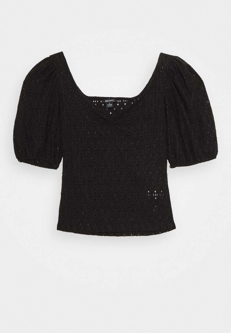 Stay chic and comfortable in this Monki casual style t-shirt for women. Perfect for the Spring/Summer season, this black tee features a trendy print. Ideal for pairing with your favorite jeans or shorts for a laid-back look. Elevate your wardrobe with this must-have staple.