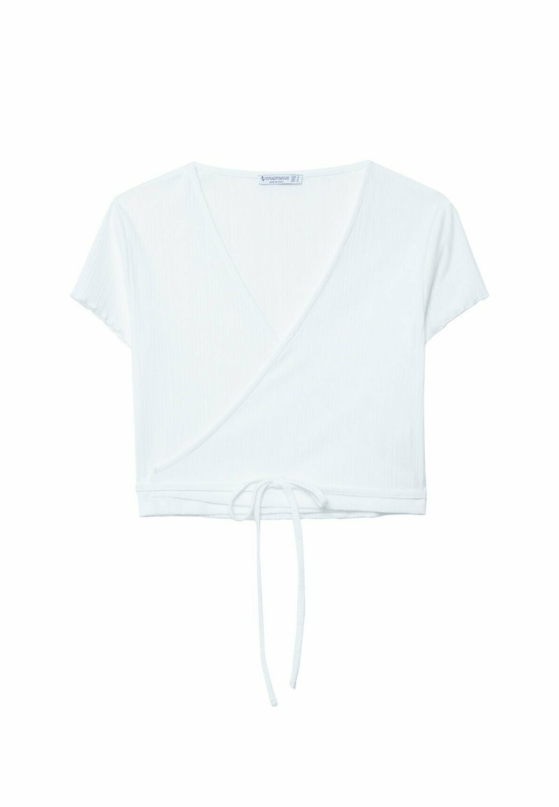 Stay cool and stylish this Spring/Summer with the Stradivarius Casual Style Women's T-Shirt in crisp White. This trendy tee features a chic graphic print, perfect for adding a touch of flair to your everyday look. Made from soft and breathable fabric, it's a must-have for your warm-weather wardrobe. Upgrade your casual collection with this versatile and fashionable T-shirt.