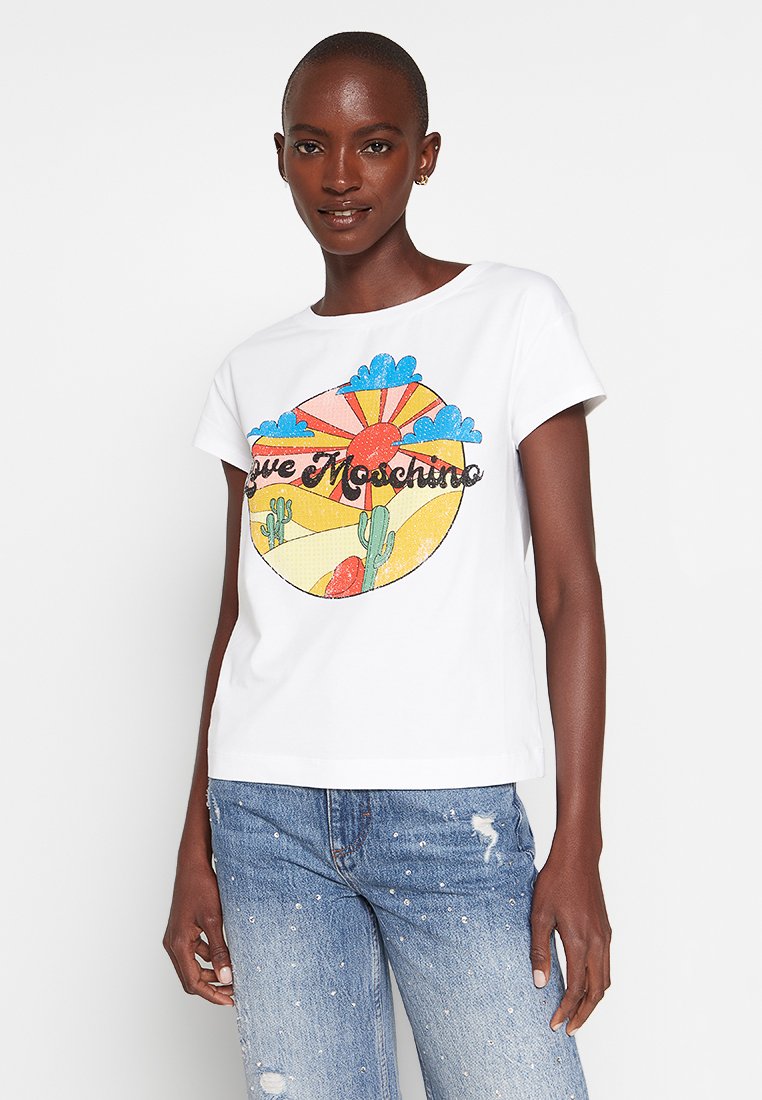 This Love Moschino t-shirt is perfect for a casual and stylish look. Made for women, it's ideal for the Spring/Summer season. The white color is fresh and versatile, making it easy to pair with any outfit. With a fun print design, this t-shirt is a must-have for your wardrobe.