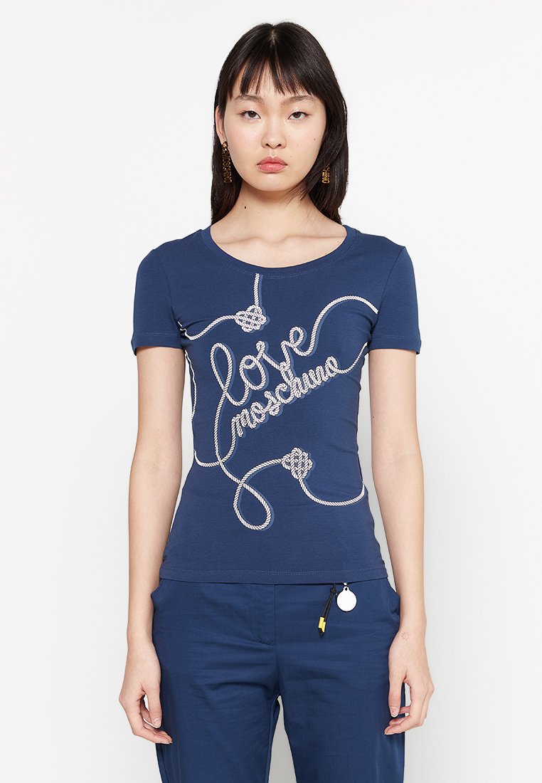 Stay effortlessly chic in this Casual Style T-shirt from Love Moschino. Perfect for the Spring/Summer season, this blue tee with a printed design is a must-have for any fashionable woman. Made from high-quality materials, it provides both comfort and style. Elevate your wardrobe with this stylish T-shirt that pairs perfectly with your favorite jeans or shorts.