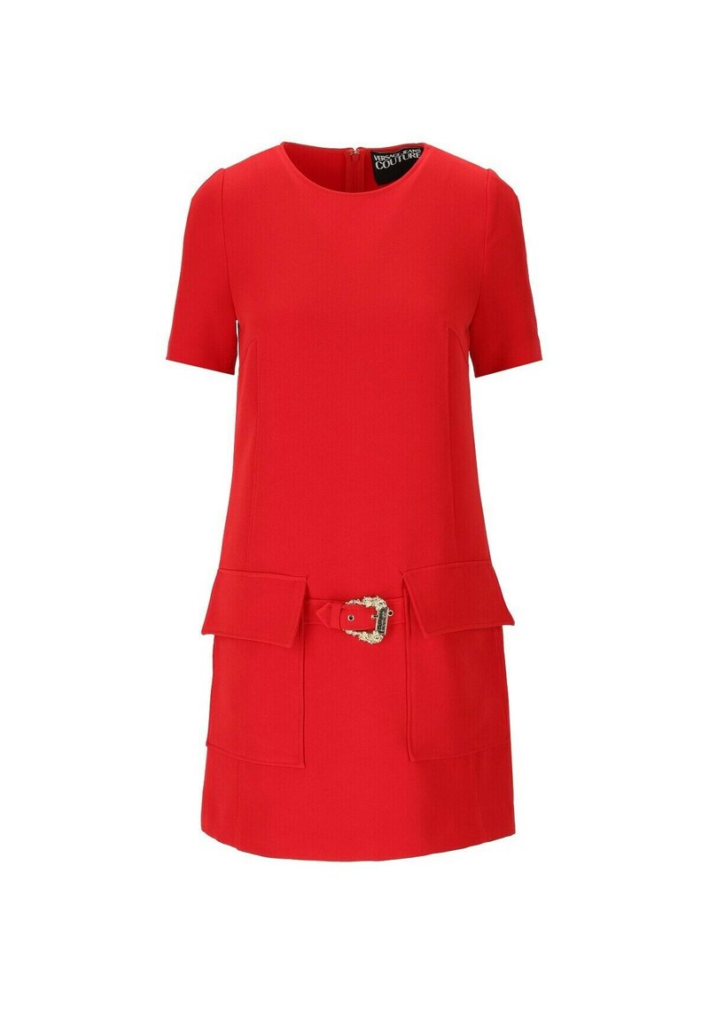 Elevate your spring/summer wardrobe with this stylish Casual/Elegant dress from Versace Jeans Couture. The vibrant red color makes it perfect for any occasion, while the flattering silhouette adds a touch of sophistication. This versatile dress, known as the "tubino", seamlessly transitions from day to night with ease. Stay chic and comfortable all season long in this must-have piece.