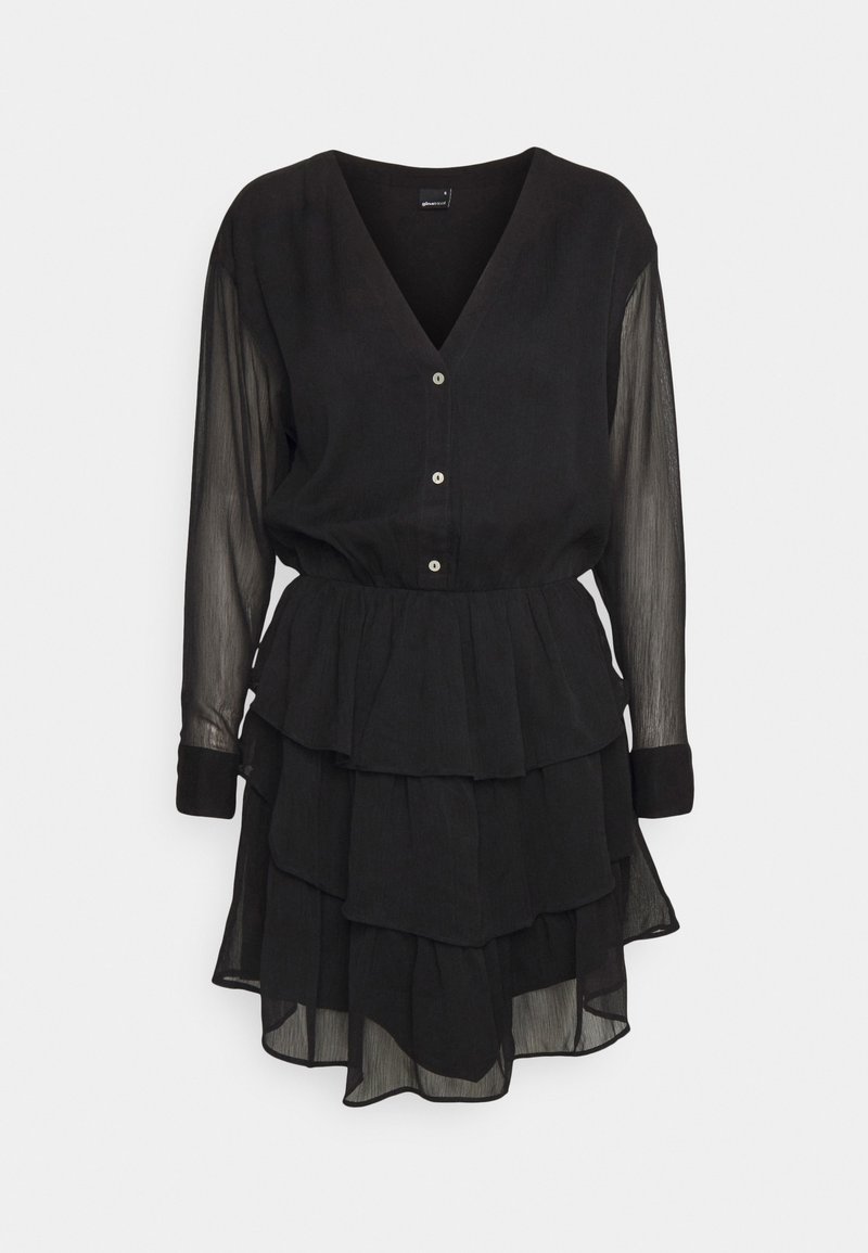 Elevate your spring/summer wardrobe with this stylish Casual/Elegant black shirt dress from Gina Tricot. Perfect for any occasion, this versatile piece can be dressed up or down with ease. Featuring a flattering silhouette and lightweight fabric, this dress is a must-have for the season. Stay chic and comfortable in this timeless wardrobe staple.