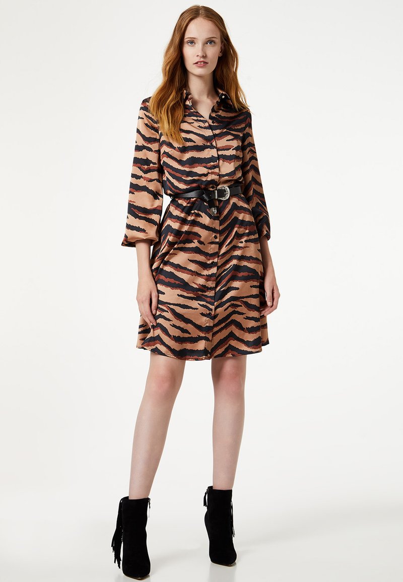 Introducing the Casual/Elegant LIU JO Women's Shirt Dress in a chic Brown shade, perfect for the Spring/Summer season. This versatile piece effortlessly combines style and comfort, making it a must-have for any fashion-forward woman. Whether dressed up with heels or styled casually with sandals, this dress is a timeless wardrobe essential. Elevate your look with this effortlessly stylish shirt dress from LIU JO.