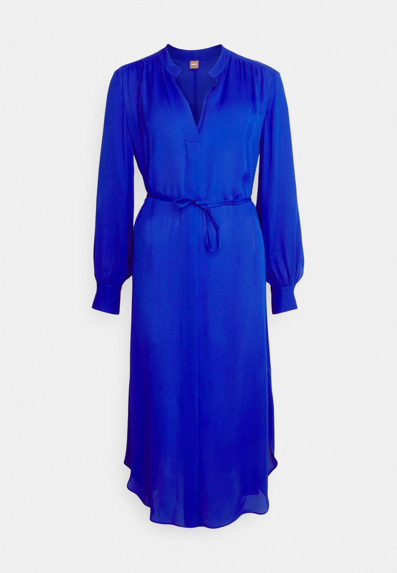 Introducing the Boss casual/elegant women's dress in a refreshing blue hue, perfect for the Spring/Summer season. This shirt dress features a relaxed silhouette with a touch of sophistication, ideal for both casual outings and special occasions. Stay stylish and comfortable with this versatile piece from Boss. Upgrade your wardrobe with this must-have dress for the warmer months ahead.