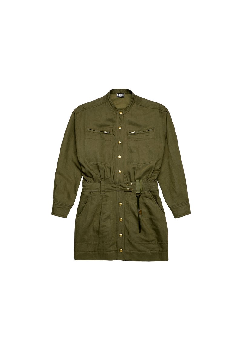Stay effortlessly chic this Spring/Summer in the Diesel Green Casual/Elegant Shirt Dress for Women. This versatile piece combines laid-back style with a touch of sophistication, perfect for any occasion. The beautiful green hue adds a refreshing pop of color to your wardrobe. Elevate your look and embrace the season in this must-have shirt dress.