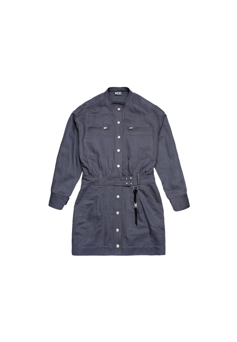 Introducing the Diesel Casual/Elegant Grey dress for women, perfect for the Spring/Summer season. This stylish and versatile piece can be dressed up or down for any occasion. Embrace effortless chic with this timeless wardrobe essential. Add a touch of sophistication to your look with this must-have shirt dress.