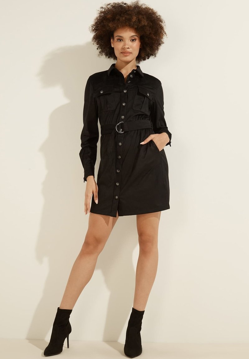 Get ready to elevate your Spring/Summer wardrobe with this Casual/Elegant Guess dress for women. In a sleek black color, this shirt dress is perfect for any occasion, whether you're out for brunch or a night on the town. Made with high-quality materials and a stylish design, this dress effortlessly combines comfort and sophistication. Embrace your inner fashionista and add this versatile piece to your closet today.