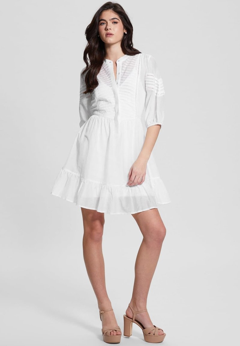 Elevate your spring/summer wardrobe with Guess's Casual/Elegant White Shirt Dress for Women. This versatile piece effortlessly combines comfort and style, making it perfect for both casual outings and more formal events. The crisp white color is fresh and timeless, while the shirt dress design adds a touch of sophistication. Stay chic and comfortable all season long in this must-have garment.
