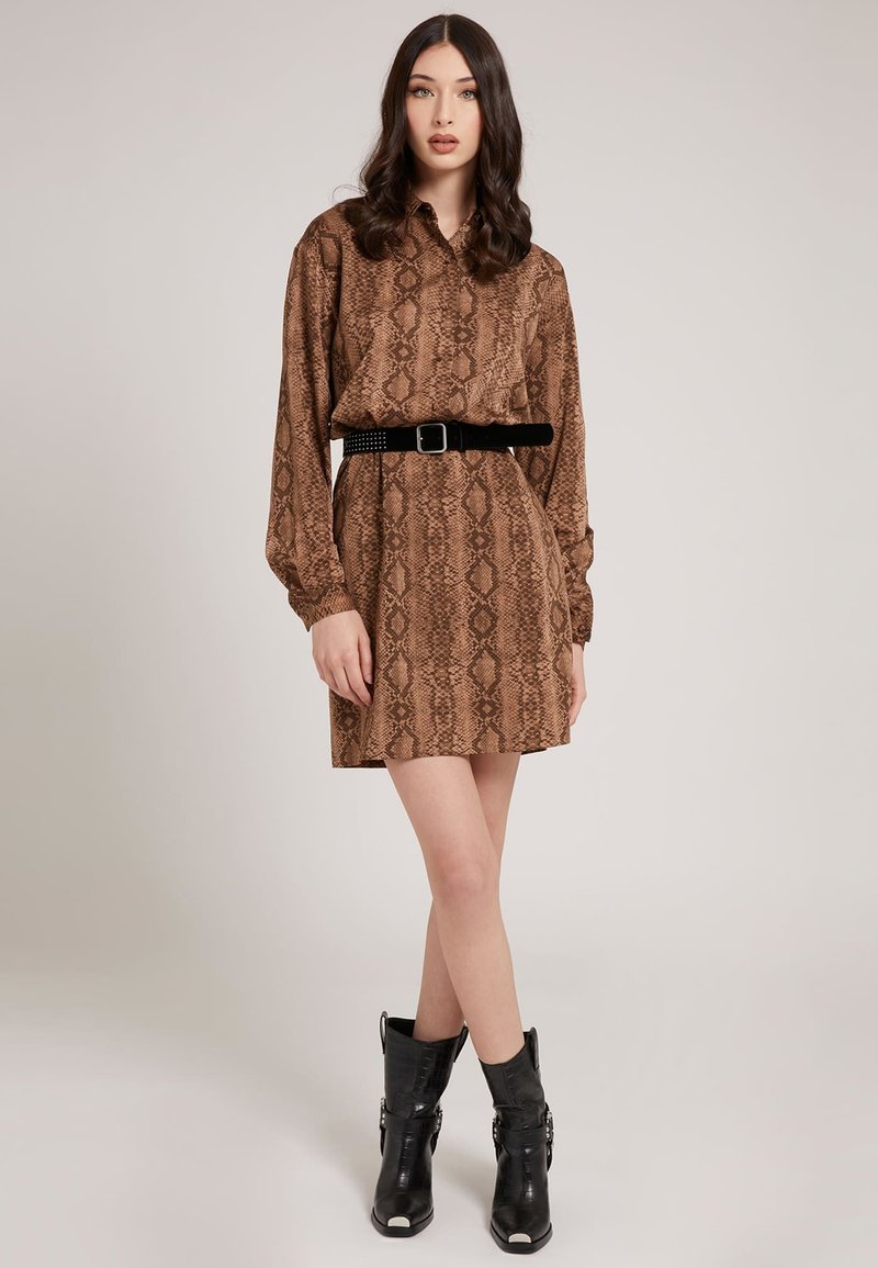 Stay effortlessly chic in this Guess shirt dress for women, perfect for any casual or elegant occasion. In a beautiful shade of brown, this versatile piece is ideal for the Spring/Summer season. From brunch dates to garden parties, this dress will be your go-to choice. Elevate your style with this timeless and stylish shirt dress from Guess.