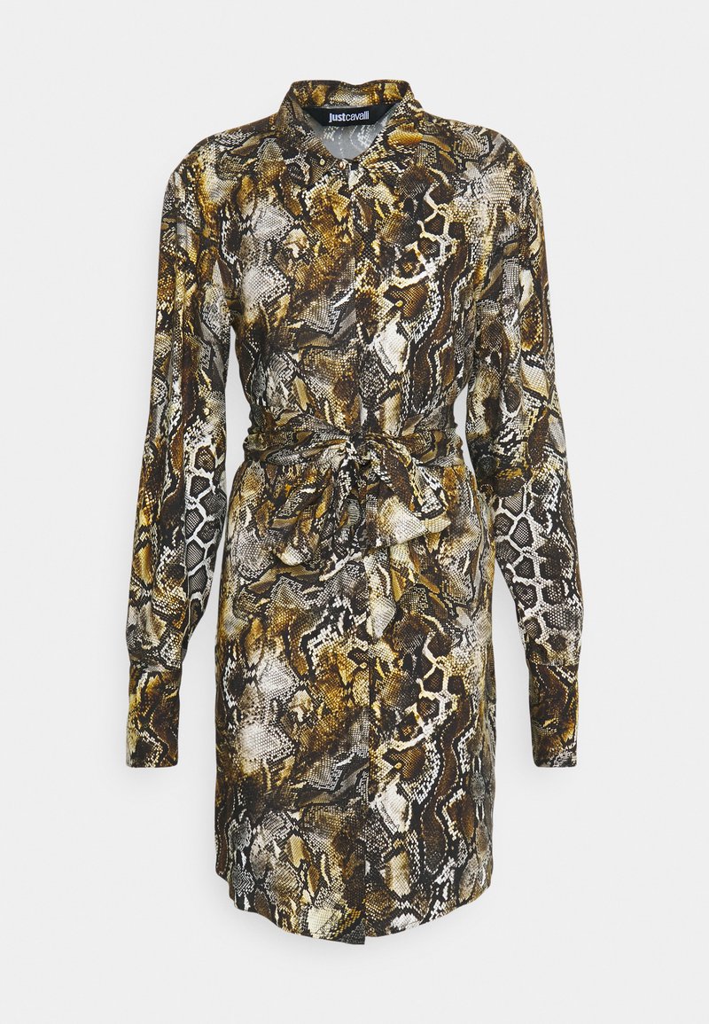 This Just Cavalli brown shirt dress is the perfect blend of casual and elegant style, ideal for the Spring/Summer season. Featuring a flattering silhouette and chic design, this dress is a must-have for any woman wanting to make a fashionable statement. Made with high-quality materials, this versatile piece can easily be dressed up or down for any occasion. Upgrade your wardrobe with this trendy and sophisticated Just Cavalli shirt dress.