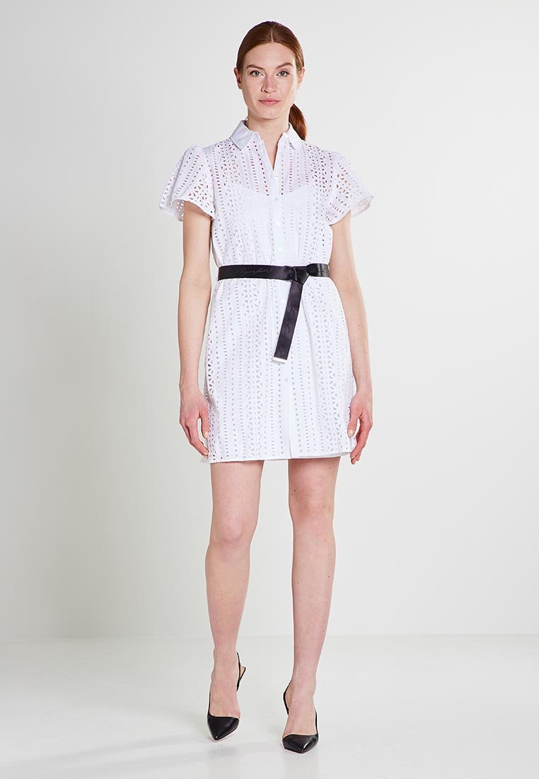 Elevate your spring/summer wardrobe with this Casual/Elegant shirt dress from Karl Lagerfeld. The crisp white color adds sophistication to any outfit, while the relaxed fit keeps you comfortable all day long. Perfect for any occasion, this versatile piece embodies effortless style and timeless chic. Add a touch of Karl Lagerfeld luxury to your closet this season.