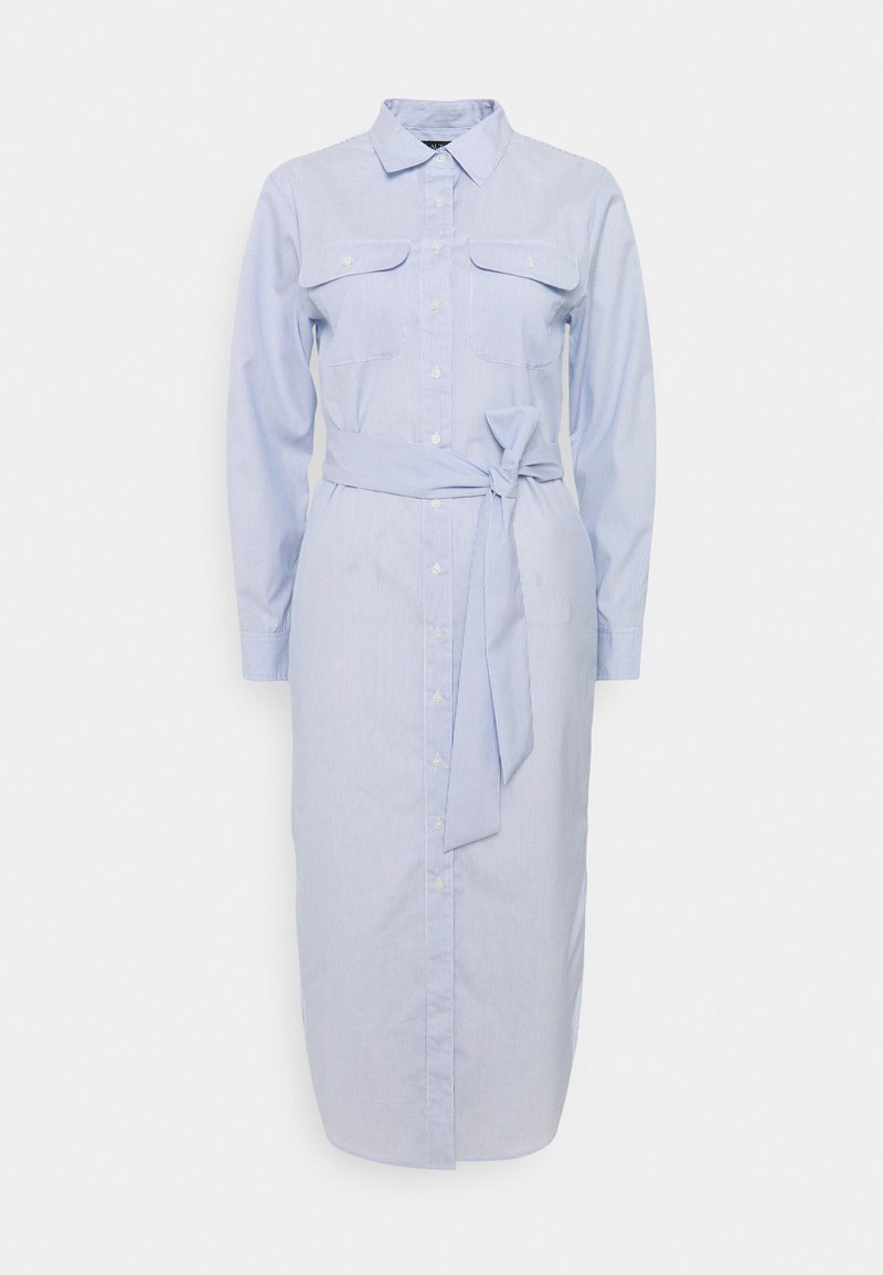 Elevate your spring/summer wardrobe with this Casual/Elegant blue shirt dress from Lauren Ralph Lauren. Perfect for any occasion, this versatile piece embodies effortless style and sophistication. The flowing silhouette and crisp collar create a polished look, while the lightweight fabric ensures comfort all day long. Stay chic and comfortable in this timeless and classic piece.