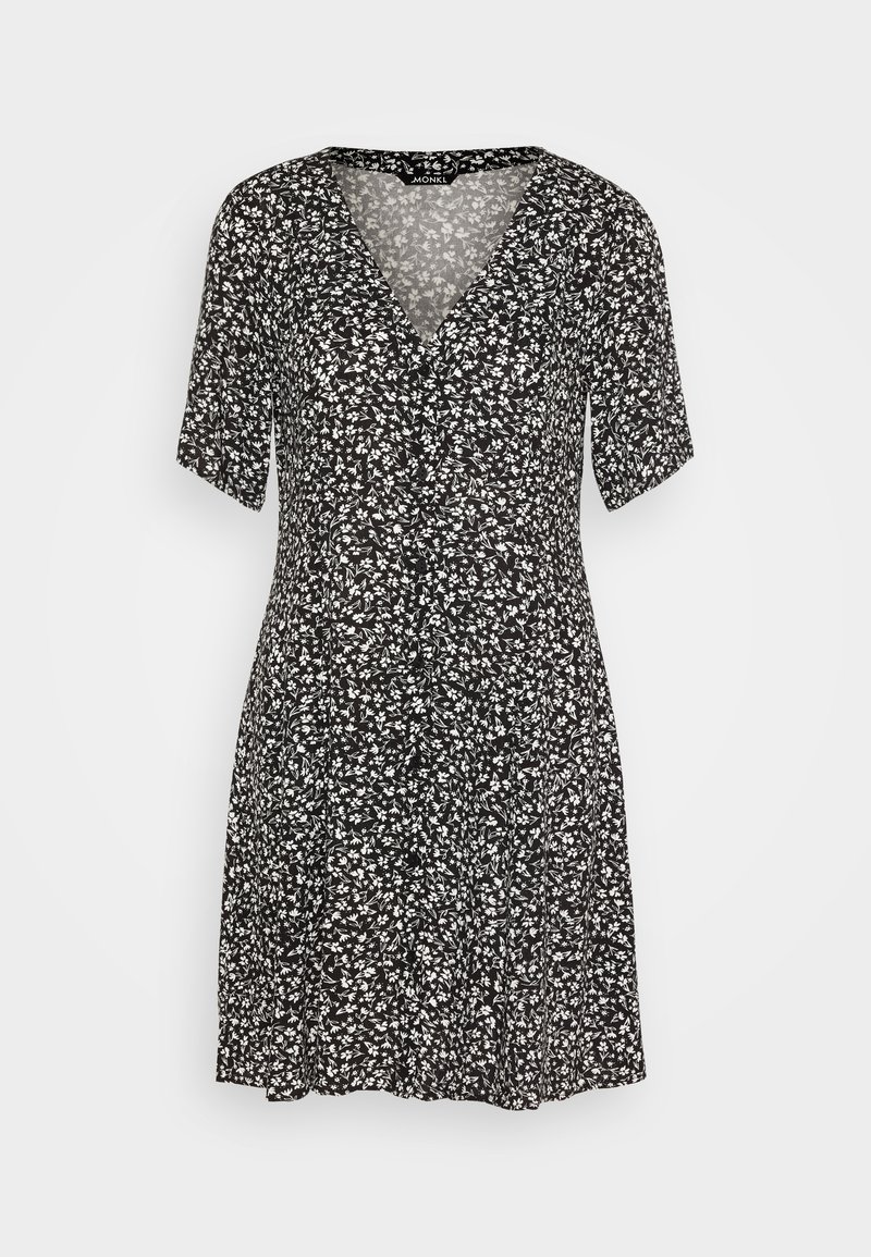 Introducing the Monki Casual/Elegant Women's Shirt Dress in timeless Black. Perfect for the Spring/Summer seasons, this versatile piece effortlessly combines comfort and style. Whether you're heading to a brunch date or a night out, this dress is a must-have for any fashion-forward woman. Dress it up with heels or keep it casual with sandals for a chic look all day long.