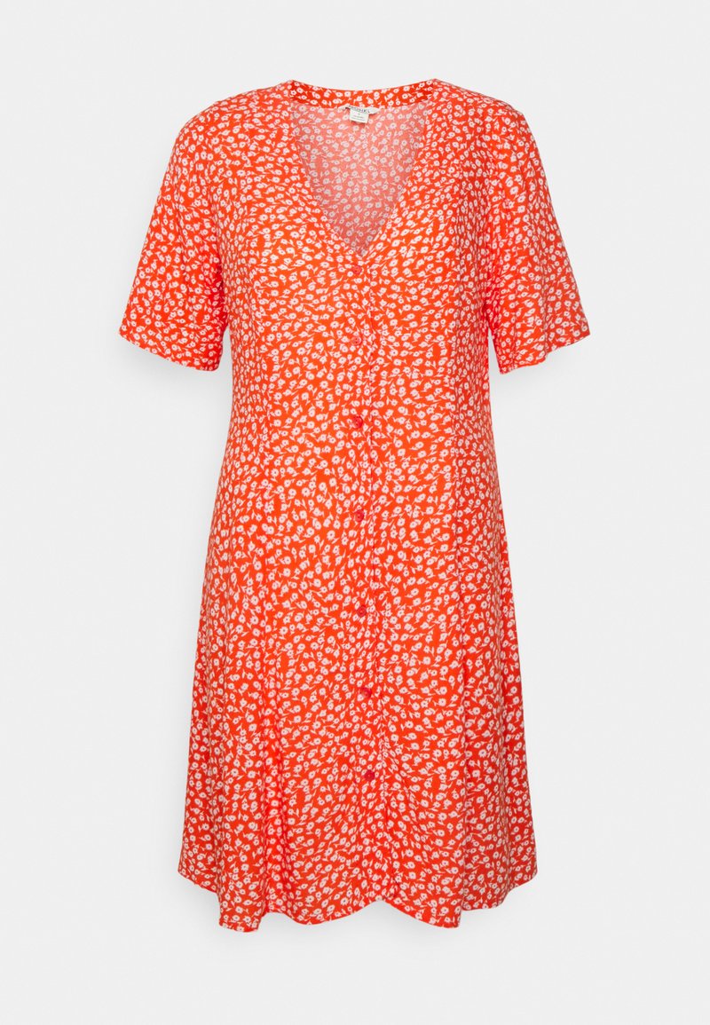 This Monki dress is perfect for a Casual/Elegant look this Spring/Summer. The vibrant orange color adds a pop of fun to your wardrobe. The shirt dress style is comfortable and versatile for any occasion. Stay stylish and chic with this must-have piece.