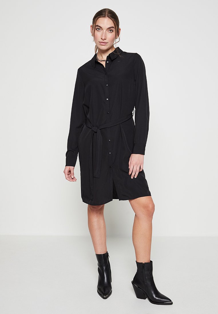 Elevate your spring/summer wardrobe with this versatile Vero Moda shirt dress in classic black. Perfect for both casual and elegant occasions, this piece effortlessly blends style and comfort. The lightweight fabric and relaxed fit make it ideal for warmer weather, while the chic black color adds a touch of sophistication to any look. Embrace effortless style with this must-have shirt dress from Vero Moda.