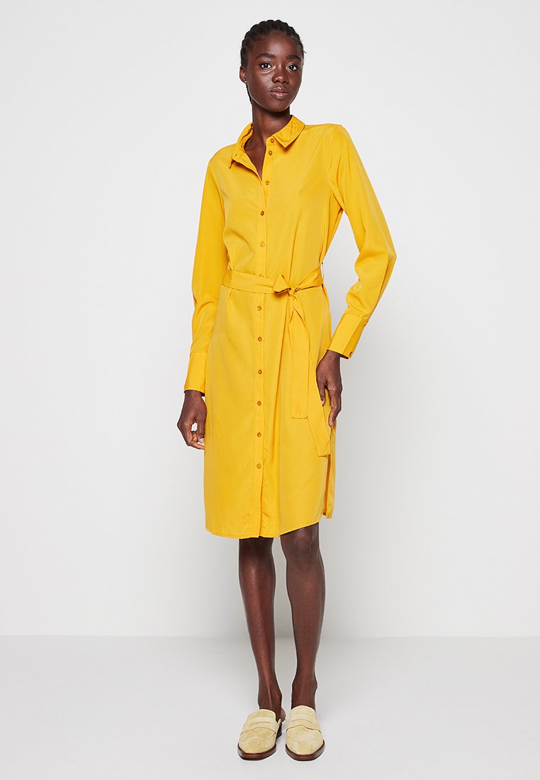 Stay stylish and chic this Spring/Summer season with this Casual/Elegant yellow shirt dress from Vero Moda. The perfect blend of comfort and sophistication, this versatile piece can easily take you from brunch to a night out. With its flattering silhouette and on-trend color, this shirt dress is a must-have for any fashion-forward woman. Elevate your wardrobe with this timeless and effortlessly stylish piece.