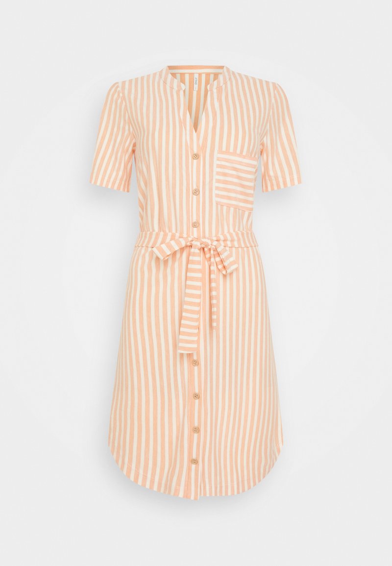 Stay effortlessly chic this Spring/Summer with the Only Women's Casual/Elegant Orange Shirt Dress. Perfect for any occasion, this dress combines comfort and style with its vibrant orange hue. Ideal for a day out or a casual evening event, this versatile piece is a must-have for every fashionable woman's wardrobe. Upgrade your look with the timeless elegance of this Only Shirt Dress.