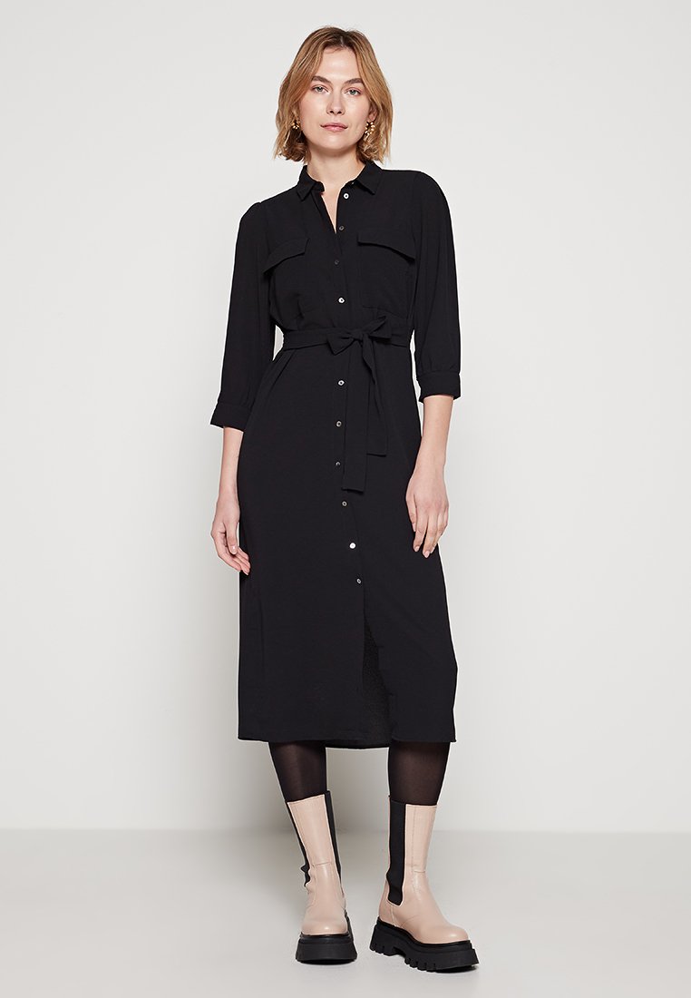 Stay effortlessly chic this Spring/Summer with the Only Casual/Elegant Women's Shirt Dress in classic black. This versatile piece can be dressed up or down, perfect for any occasion. With its relaxed silhouette and flowing fabric, this dress is both comfortable and stylish. Add a touch of sophistication to your wardrobe with this must-have piece.
