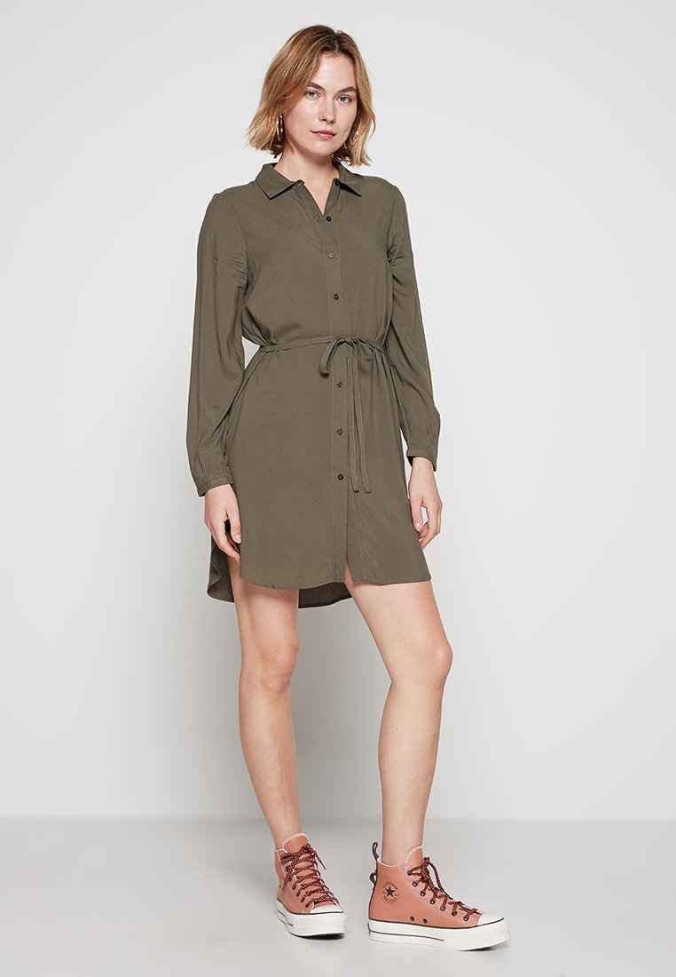 Stay effortlessly chic this Spring/Summer with the Casual/Elegant Grey Shirt Dress from Only. Perfect for any occasion, this versatile piece combines comfort and style. Its classic design and soft fabric make it a must-have for every woman's wardrobe. Upgrade your look with this timeless and feminine dress.