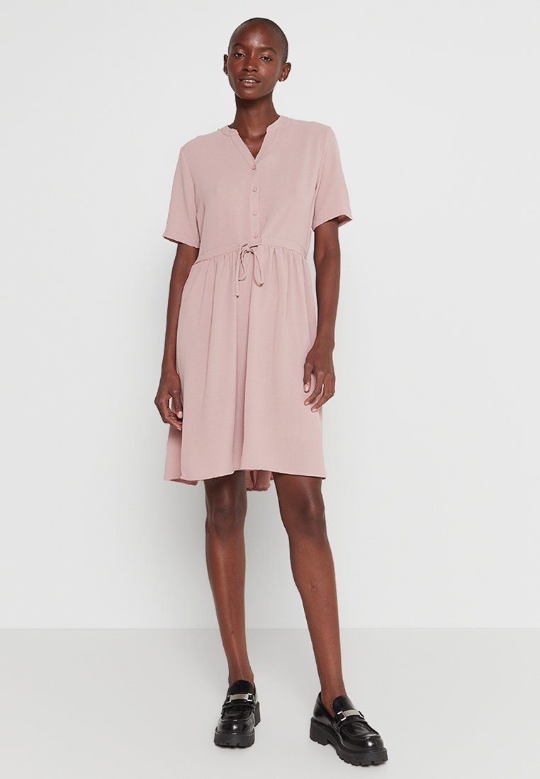 Introducing the JDY Casual/Elegant Women's Dress in Pink, perfect for the Spring/Summer season. This versatile piece is effortlessly chic and can be dressed up or down for any occasion. The shirt dress silhouette adds a touch of sophistication, while the soft pink color exudes femininity. A must-have addition to your wardrobe for a stylish and comfortable look.
