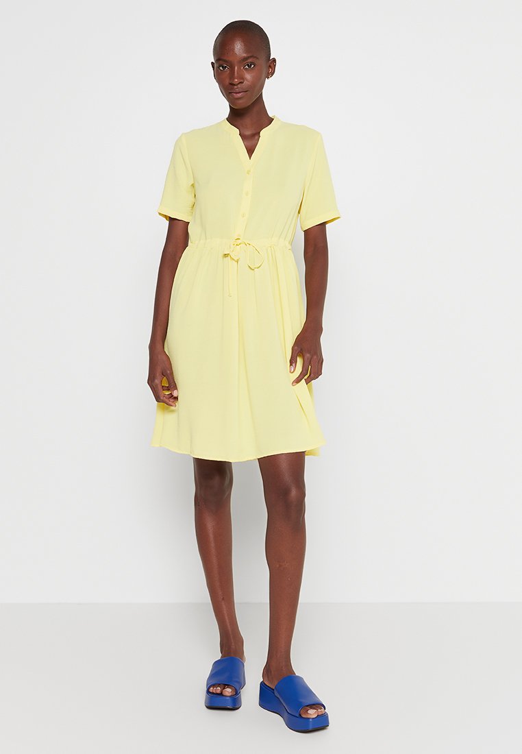 Stay cool and chic in this Casual/Elegant Yellow shirt dress from JDY. Perfect for the Spring/Summer season, this versatile piece can be dressed up or down. The comfortable fabric and flattering silhouette make it a must-have for any woman's wardrobe. Add a pop of color to your look with this stylish JDY shirt dress.