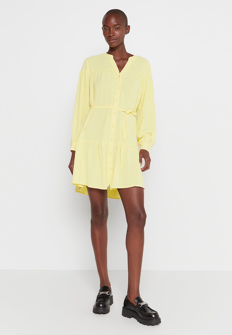 Stay cool and chic in this Casual/Elegant Yellow shirt dress from JDY. Perfect for the Spring/Summer season, this versatile piece can be dressed up or down. The comfortable fabric and flattering silhouette make it a must-have for any woman's wardrobe. Add a pop of color to your look with this stylish JDY shirt dress.