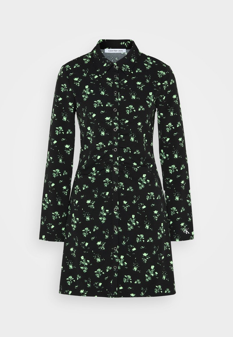 The Calvin Klein Jeans Women's Casual/Elegant Shirt Dress is the perfect choice for the Spring/Summer season. Made in a sleek black color, this versatile dress effortlessly transitions from day to night. With its classic silhouette and stylish design, it's a must-have piece for any woman's wardrobe. Perfect for any occasion, this dress is sure to keep you looking chic and sophisticated all season long.