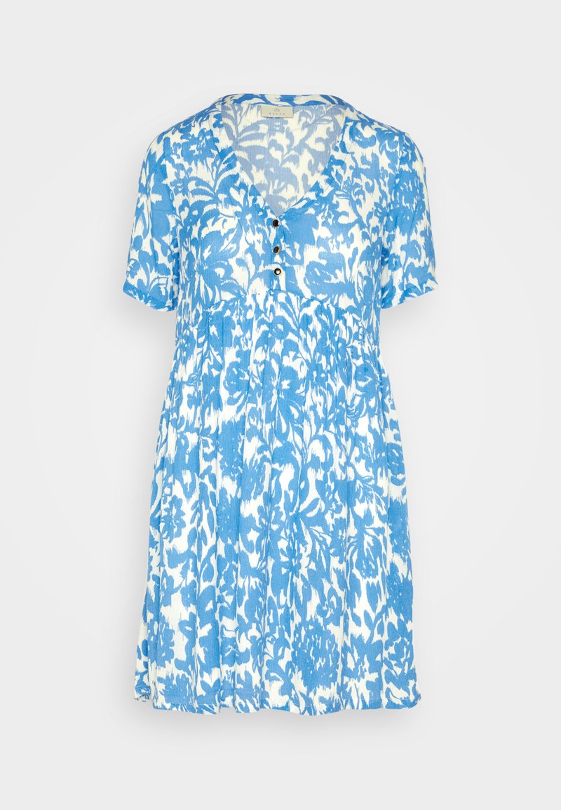 This Casual/Elegant dress by Kaffe for women is perfect for the Spring/Summer season. The beautiful shade of Blue adds a touch of sophistication to any outfit. The shirt dress style effortlessly combines comfort with style. A versatile piece that can be dressed up or down for any occasion.