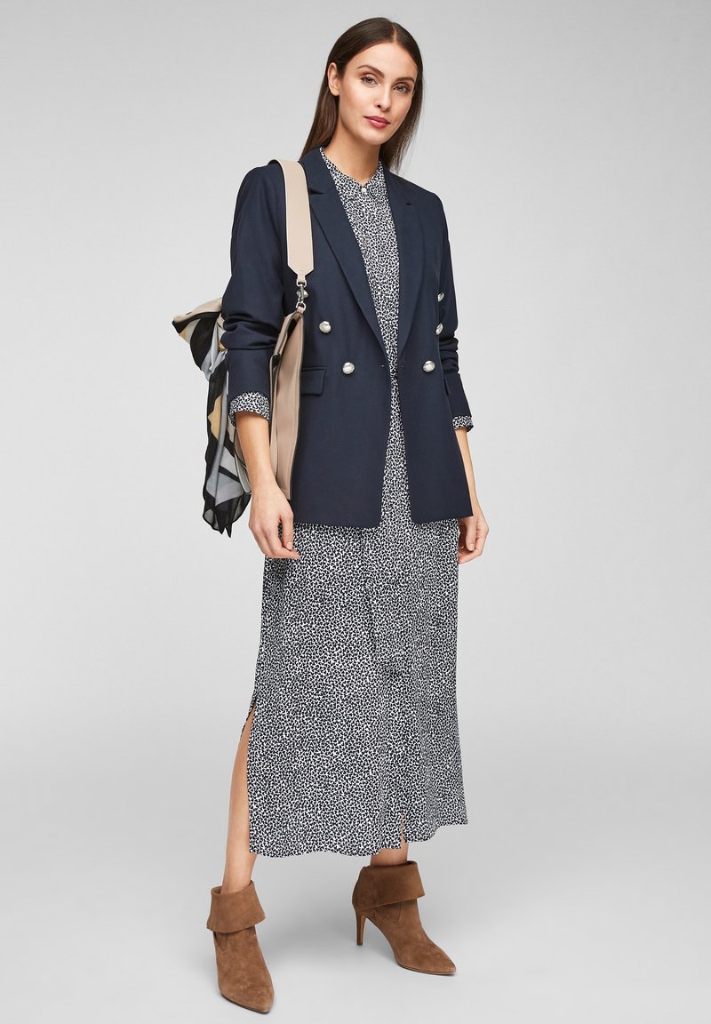 Get ready for the warmer seasons with this Casual/Elegant dress from s.Oliver BLACK LABEL. In a beautiful shade of Blue, this shirt dress is perfect for a stylish yet comfortable look. Made for the modern woman, this piece is ideal for Spring/Summer occasions. Stand out in style with this abito a camicia dress.
