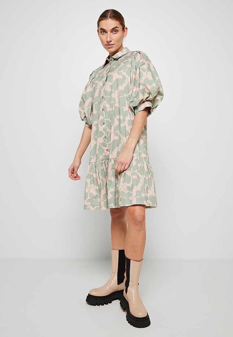 Elevate your spring/summer wardrobe with this Casual/Elegant Green Shirt Dress from RIANI. Perfect for a variety of occasions, this versatile piece combines style and comfort effortlessly. The flattering silhouette and vibrant green color make it a standout choice for the season. Embrace effortless chic with this timeless piece.