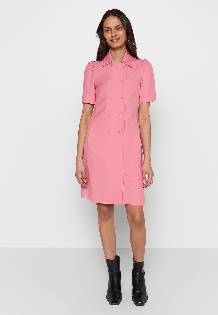 Stay effortlessly chic in this RIANI Casual/Elegant shirt dress for women. Perfect for the Spring/Summer season, this pink dress exudes feminine charm. Its relaxed silhouette and elegant details make it a versatile piece for any occasion. Elevate your style with this must-have wardrobe staple.