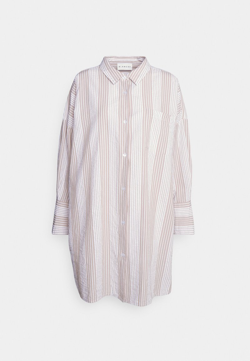 Introducing the BLANCHE Beige Casual/Elegant Shirt for Women, perfect for the Spring/Summer season. This versatile piece effortlessly combines style and comfort, ideal for any occasion. Crafted with a chic beige hue, this shirt is a must-have for the modern woman's wardrobe. Elevate your look with this BLANCHE shirt for a touch of sophistication.