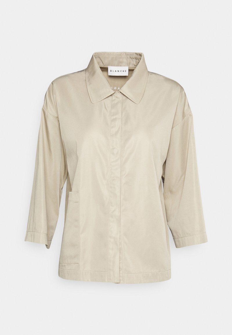 Introducing the BLANCHE Beige Casual/Elegant Shirt for Women, perfect for the Spring/Summer season. This versatile piece effortlessly combines style and comfort, ideal for any occasion. Crafted with a chic beige hue, this shirt is a must-have for the modern woman's wardrobe. Elevate your look with this BLANCHE shirt for a touch of sophistication.