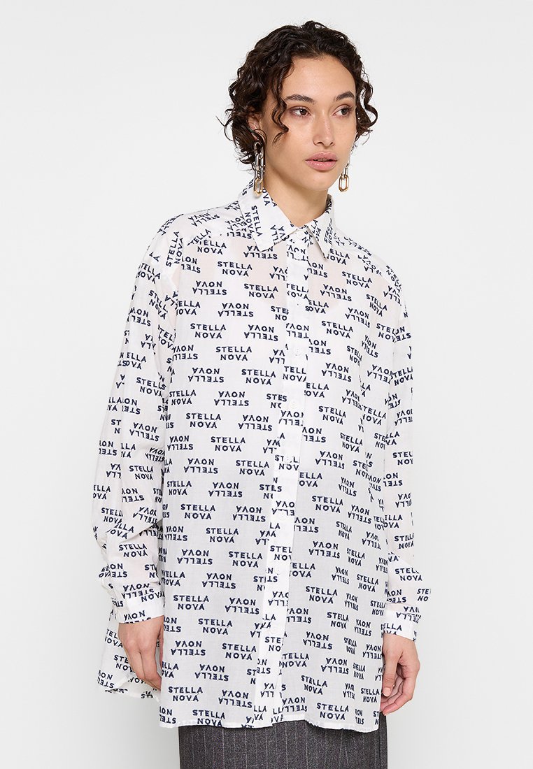 Introducing the Stella Nova Casual/Elegant Shirt for Women, perfect for the Spring/Summer season. This stylish white shirt combines comfort with sophistication, making it a versatile wardrobe staple. Whether dressed up or down, this top is sure to elevate any outfit. Add a touch of effortless chic to your look with the Stella Nova shirt.