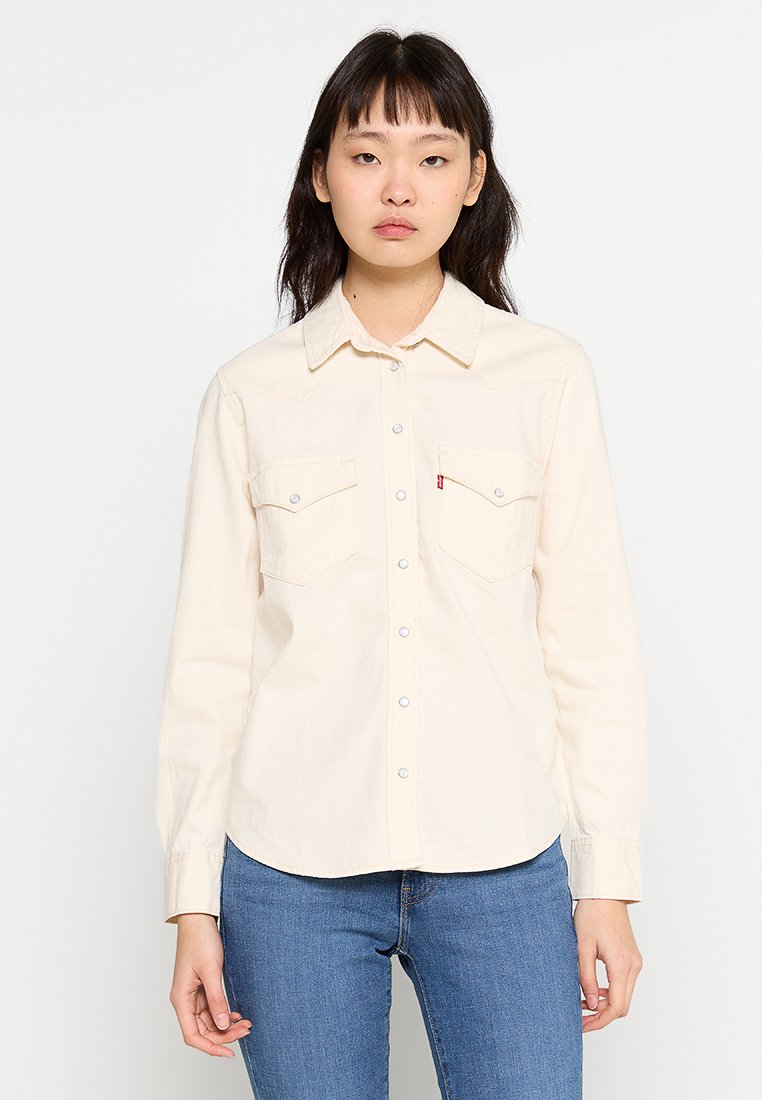 The Levi's® Beige Casual/Elegant Women's Shirt is the perfect addition to your Spring/Summer wardrobe. This versatile piece can be dressed up or down for any occasion. With its relaxed fit and timeless beige color, it offers a comfortable and chic look. Elevate your style with this must-have staple from Levi's®.
