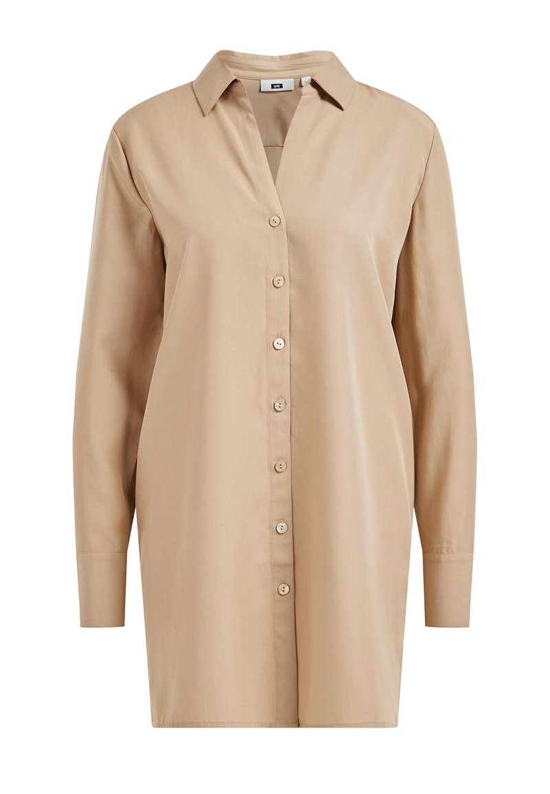 Introducing the Casual/Elegant Women's Beige Shirt from WE Fashion, perfect for the Spring/Summer season. This versatile piece effortlessly blends style and comfort, making it a must-have in any wardrobe. Whether paired with jeans for a relaxed look or dressed up with a skirt for a more polished ensemble, this shirt is sure to elevate any outfit. Embrace effortless chic with this timeless piece from WE Fashion.