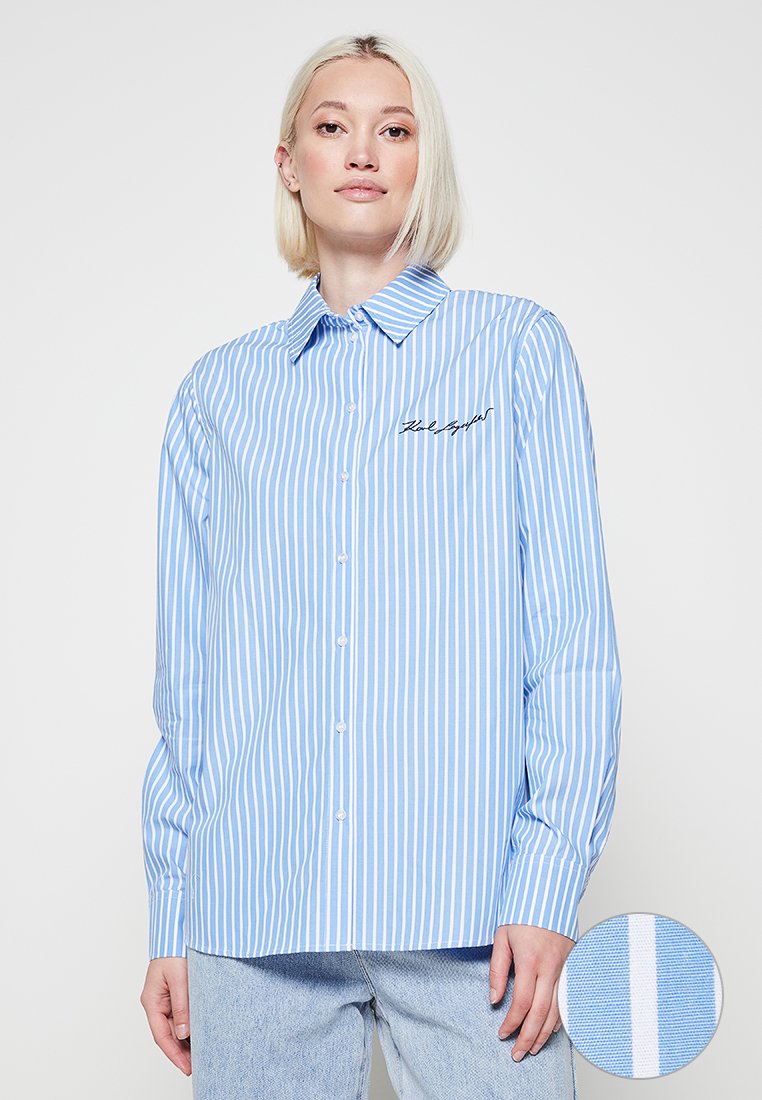 Elevate your spring/summer wardrobe with this Casual/Elegant women's shirt from Karl Lagerfeld. Crafted in a beautiful shade of blue, this versatile piece is perfect for any occasion. With a stylish design and high-quality fabric, this shirt effortlessly combines sophistication and comfort. A must-have addition to your collection for a touch of timeless style.