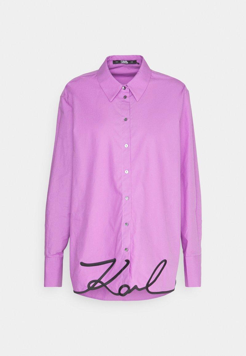 Elevate your spring/summer wardrobe with this Casual/Elegant Karl Lagerfeld shirt in a stunning violet hue. Perfect for any occasion, this versatile piece effortlessly combines style and comfort. With its sleek design and high-quality materials, this shirt is a must-have for any fashion-forward woman. Stay chic and sophisticated all season long in this timeless Karl Lagerfeld piece.