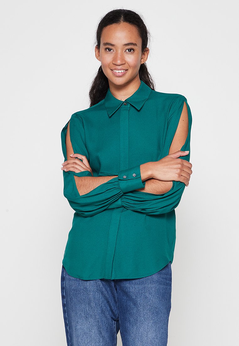 Introducing the Karl Lagerfeld Green Casual/Elegant Shirt for Women, perfect for the Spring/Summer season. This stylish piece effortlessly combines comfort with sophistication, making it a versatile wardrobe staple. The soft green color adds a refreshing touch to any outfit, whether dressed up or down. Elevate your look with this chic shirt from Karl Lagerfeld.