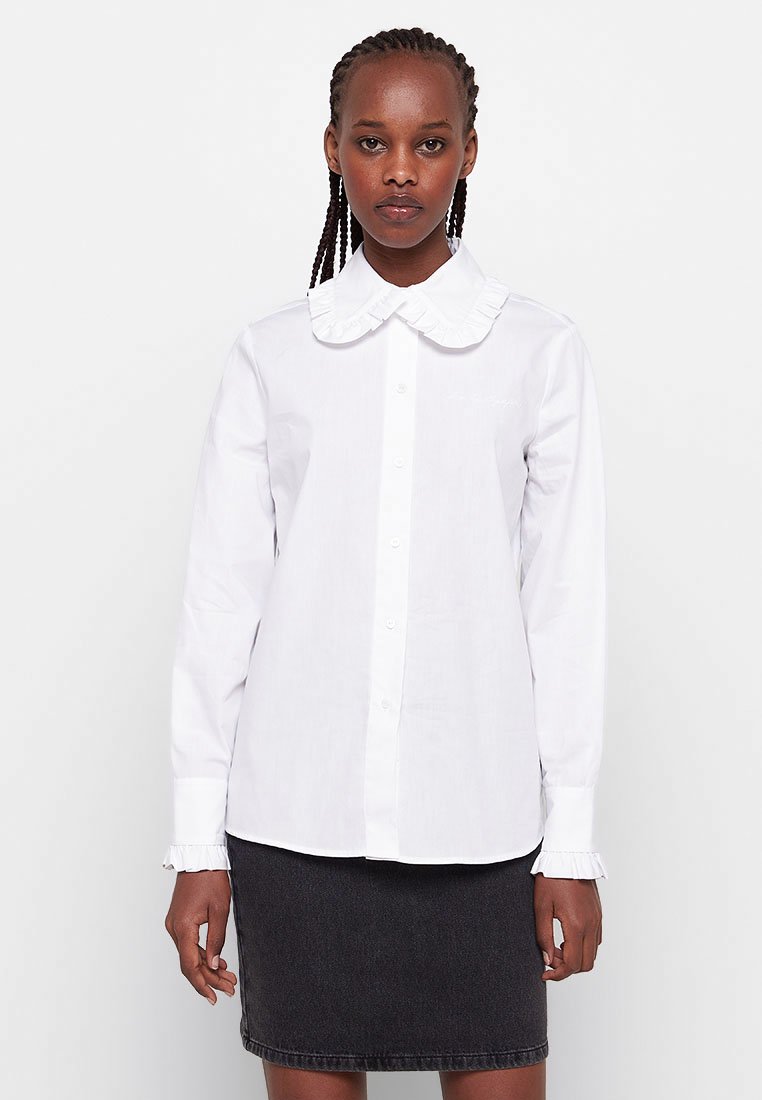 This Karl Lagerfeld women's shirt is the perfect blend of casual and elegant style. The crisp white color makes it ideal for the Spring/Summer season. A versatile piece that can be dressed up or down for any occasion. Add a touch of sophistication to your wardrobe with this timeless classic.