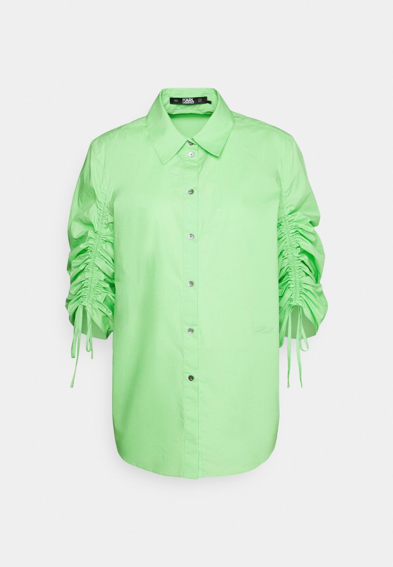 Introducing the Karl Lagerfeld Green Casual/Elegant Shirt for Women, perfect for the Spring/Summer season. This stylish piece effortlessly combines comfort with sophistication, making it a versatile wardrobe staple. The soft green color adds a refreshing touch to any outfit, whether dressed up or down. Elevate your look with this chic shirt from Karl Lagerfeld.