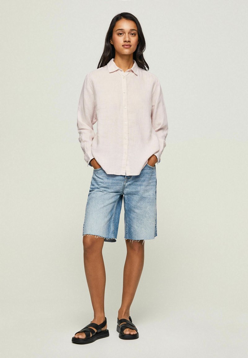 This Pepe Jeans women's blouse is the perfect blend of casual and elegant style, ideal for the Spring/Summer season. The soft pink color adds a feminine touch to any outfit. Whether worn with jeans for a laid-back look or with trousers for a more polished ensemble, this blouse is a versatile wardrobe staple. Upgrade your fashion game with this versatile and chic Pepe Jeans blouse.