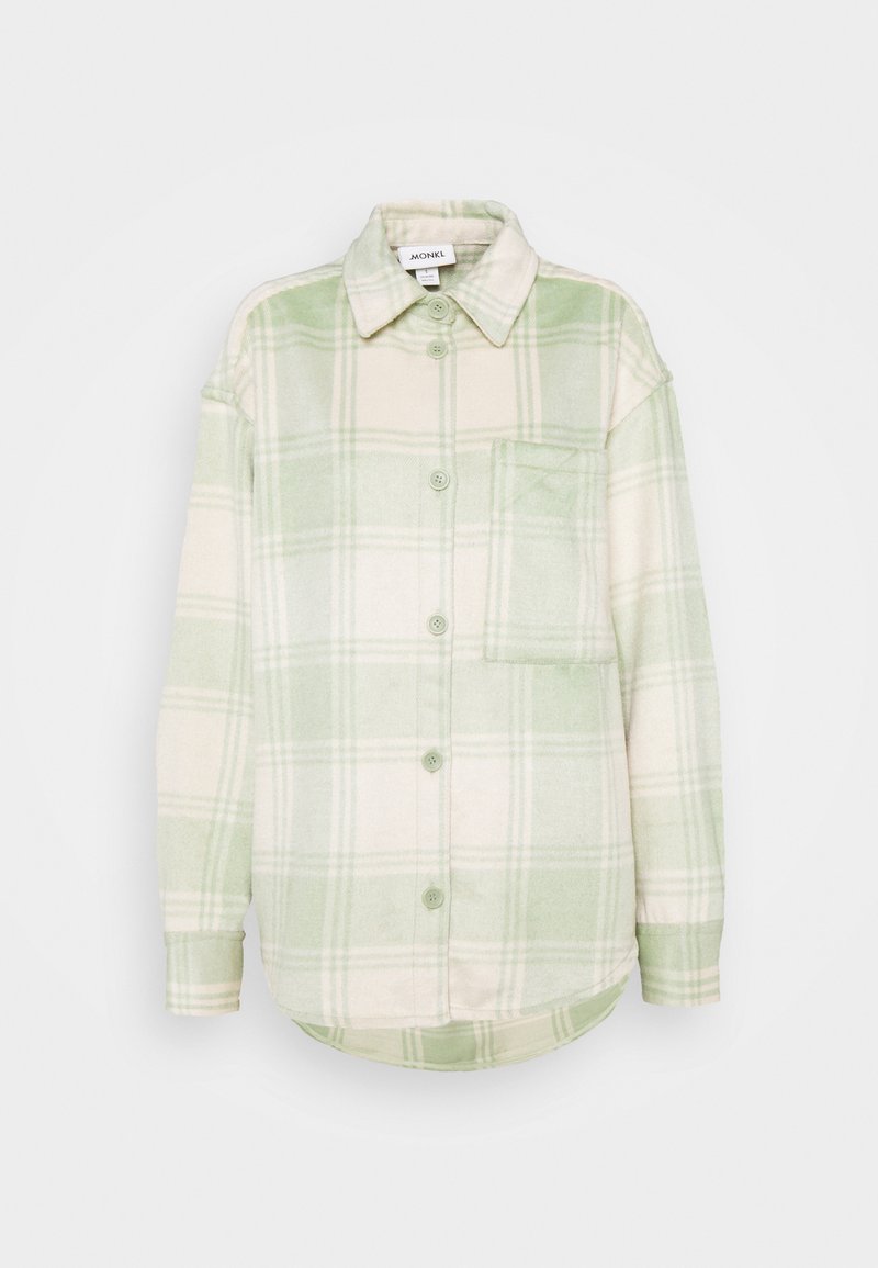 Introducing the Monki Green Casual/Elegant Women's Shirt, perfect for the Spring/Summer season. This versatile piece effortlessly combines comfort with style, ideal for any occasion. The refreshing green color adds a pop of freshness to your wardrobe. Elevate your look with this must-have staple from Monki.