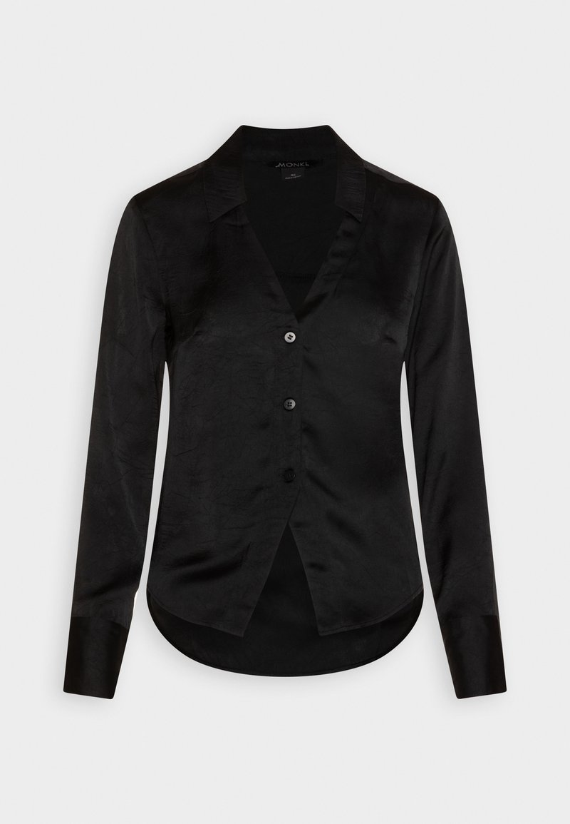 Stay effortlessly chic in this casual yet elegant Monki women's shirt, perfect for the Spring/Summer season. The classic black color adds versatility to any outfit, whether you're dressing up or dressing down. Made for comfort and style, this shirt is a must-have addition to your wardrobe. Ideal for any occasion, from a day out with friends to a dinner date.