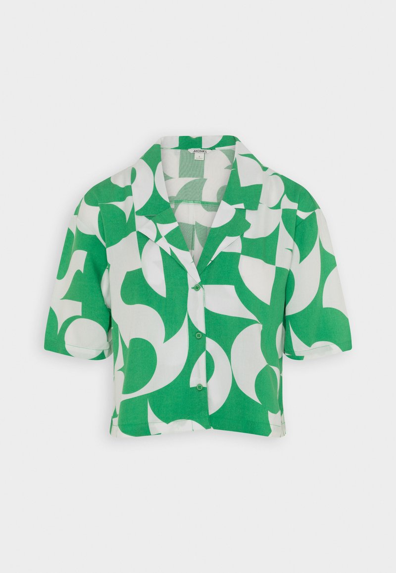 Introducing the Monki Green Casual/Elegant Women's Shirt, perfect for the Spring/Summer season. This versatile piece effortlessly combines comfort with style, ideal for any occasion. The refreshing green color adds a pop of freshness to your wardrobe. Elevate your look with this must-have staple from Monki.