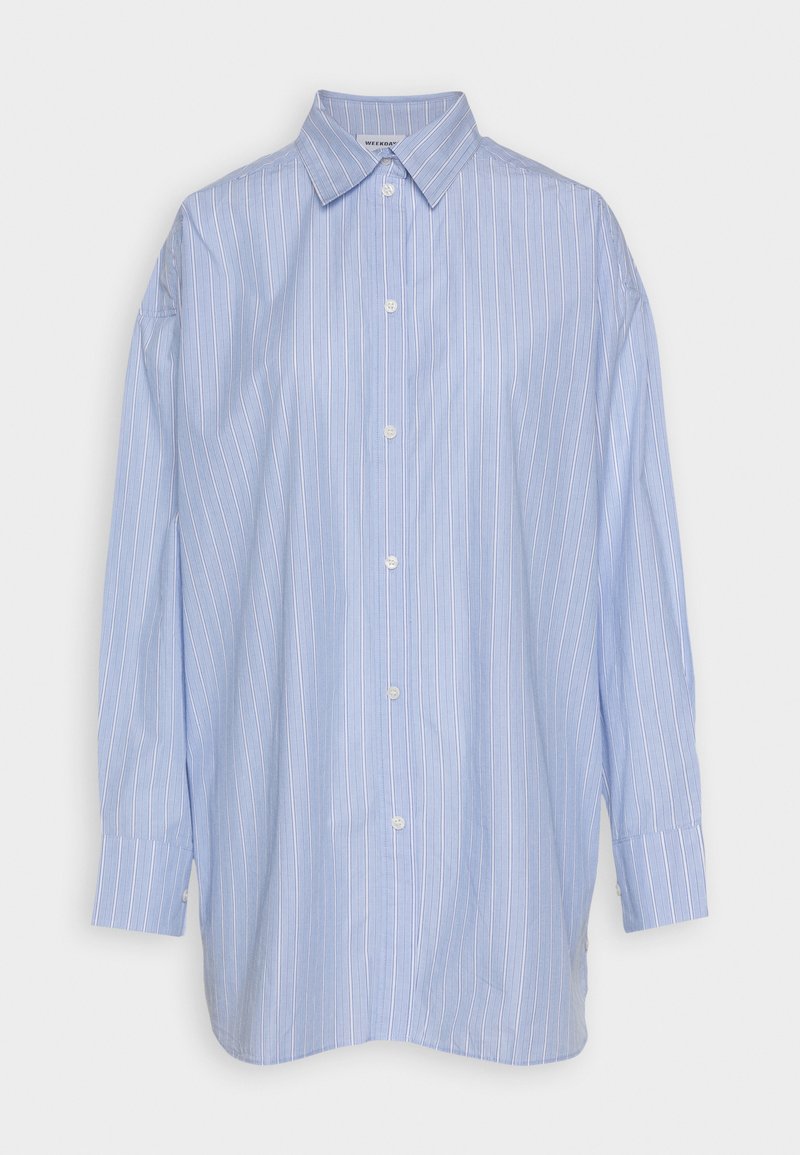 Stay effortlessly chic this Spring/Summer with the Weekday women's casual/elegant Blue shirt. Perfect for any occasion, this versatile shirt offers a stylish touch to any outfit. The lightweight fabric and relaxed fit make it ideal for warm weather. Upgrade your wardrobe and embrace the laid-back sophistication of this timeless piece.