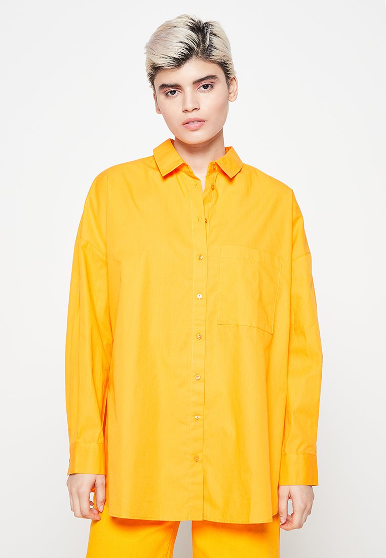 Elevate your spring/summer wardrobe with this casual yet elegant orange shirt from Only. Perfect for adding a pop of color to your outfit, this versatile piece can be dressed up or down for any occasion. Made with high-quality materials and a flattering fit, the Only shirt is a must-have for the season. Stay stylish and comfortable all day long in this chic and vibrant top.